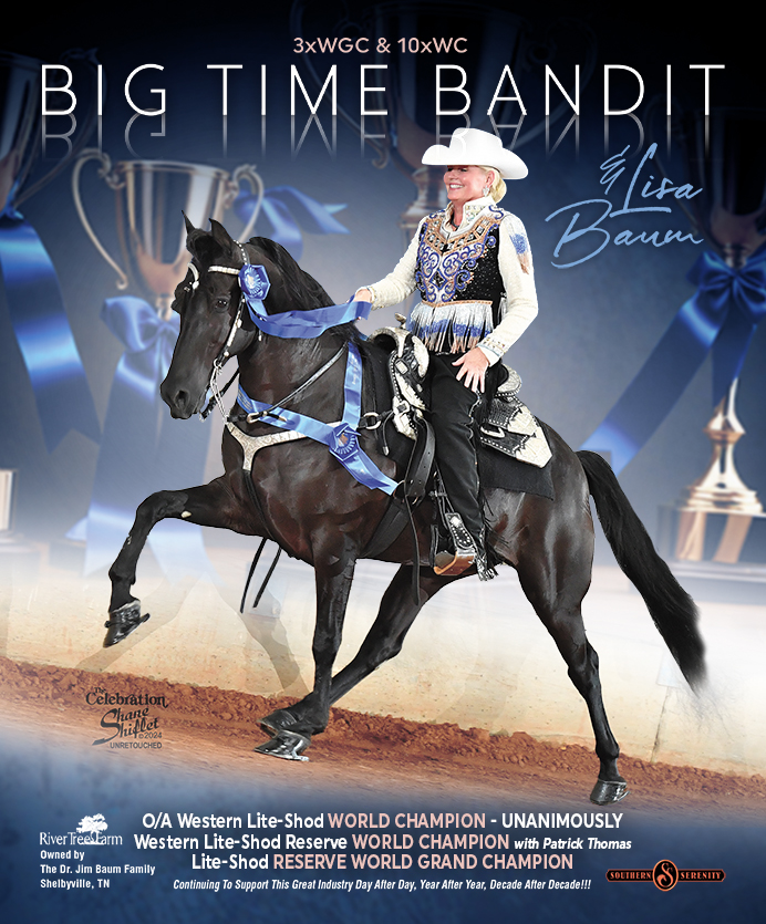 Night Twister was laid to rest on November 5, 2025, at the age of 27. Sired by Pusher’s Twist A Bout and out of Sweet Crowder Lue, he was purchased as a two-year-old by Ann Bailey and began his show career under the guidance of Ann and trainer Steve Aymett. Read More