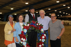 Chad Williams captured two of three stake classes July 4th weekend. He proudly posed with the owners of He's Vida Blue, Gayle Holcomb - first on left and Nick Masters - last on right, and He's Unleashed, Virginia Stewart - second on left and Gene Schaefer - second on right.