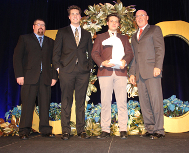 Next up to the stage was Blaise Broccard, Amanda Odom, Gayle Holcomb and Nick Masters. They were recognized for winning the Grand Championship at the National Trainers’ Show. Blaise Broccard directed Reservation On Line to the victory to become the 50th Trainers’ Show champion. During the victory, Reservation On Line was owned by Amanda Odom. In late summer, Gayle Holcomb and Nick Masters purchased the talented contender to add to their show string.