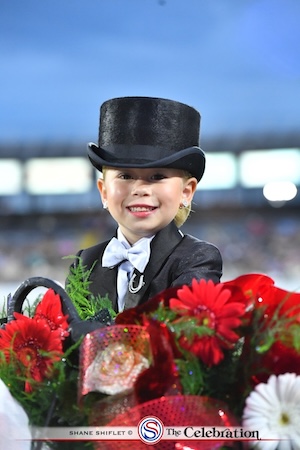 SHELBYVILLE, Tenn.— The first Saturday night of The Celebration is the preliminary to the big stake night where the Grand Champion Tennessee Walking Horse of the world is crowned. The first Saturday night is the main qualifier to see who will show back for that special honor. In addition to this, the Lead Line World Grand Championship and the Yearling World Grand Championship usher in the first spotlight rides of The Celebration. Competition got underway at precisely 7PM with Mark Farrar announcing the flag bearers, White Diamond Dollar and Vicki Self. After the colors were posted in the north turn, Jimmy West of the Edgemont Baptist Church said the invocation. The Cavaliers of Shelbyville sang the national anthem.