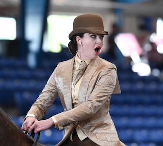 John Wick tied first in the Owner-Amateur Riders on Four & Five-Year-Old All Day Pleasure Walking Horses class with Renée Stasiewicz aboard for Scott and Renée Stasiewicz from Dousman, Wisconsin. John Wick, sired by Honors, has two blues in 10 classes in 2022. 401K paid off for owner-rider Pam Betts to claim reserve. I’m Charles Dickens wrote a third place finish with Amanda Manis in the irons for Holt and Manis. Nine of the 12 program entries were in the ring.