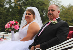 Emily Arden and the father of the bride, Chris Arden were carried by horse drawn carriage to center ring at the Al Miller Show.