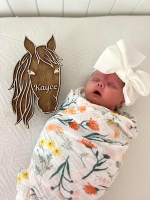 Curtis and Kendra Thompson welcomed daughter, Kayce Layne Thompson on December 12, 2023. She weighed 6 lbs. and 12 oz. and was 18.5 inches long. After six weeks in the NICU, Kayce Layne is home and doing well.