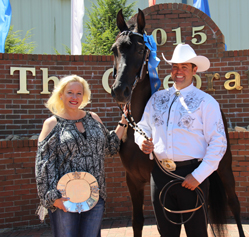 Taking his first victory pass of the 2015 Celebration was Little Toy Gunn and Joe Lester for Kasey Kesselring of Montverde, Fla. This pair earned the unanimous victory pass in the Western Lite-Shod Walking Horses, Four Years & Under Riders' Cup class. An earlier season win was earned by this pair at the Putnam County Fair. Taking reserve honors was Candy Crush and Jeff Laughlin for CCJK Enterprises. This pair crushed the competition at the 2014 Celebration taking home world championship honors in this same class. The third place tie went to Jose’s Cash Doctor and B.J. Richards for Dr. John Gladney and Rhonda Martocci.