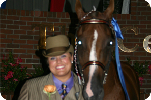 Getting the show underway for the evening was class 73A, Owner-Amateur Novice Lady Riders on Novice Walking Mares or Geldings. At The Celebration, a Novice is defined as one that has never won a Celebration blue, so in this division both the horse and rider would be looking for their first ever World Championship win. Eighteen of the 29 with reservations made the call to work for that chance to make that very first sentimental journey down Celebration victory lane. Judge Jamie Bradshaw served as Call Judge for the section. Making that memorable ride out of the Novice division was Olympic’s Godfather and Stephanie Carter riding for the Barry Carter family of Bartlett, Tenn. This had already been a great season for this team as they picked up wins at the Purchase Area Horse Show, West Tennessee Strawberry Festival Horse Show, Hardeman County Horse Show, Parker’s Crossroads Horse Show, Nettleton Horse Show and a strong 3rd in the Amateur Gelding division on Thursday Night. Remaining a Novice for another day accepting the red ribbon was Eb’s Night Storm and Taryn Harris up for Terri Harris of Prestonburg, Ky. Jazz Man’s Echo and Kelly Lokey rounded out the top three for J & M Farms of Baileyton, Ala.