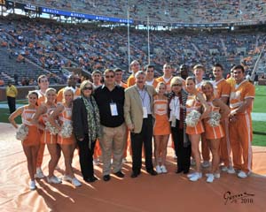 The University of Tennessee cheerleaders greeted Kay Reynolds, owners Joe Barnes, Bob and Mary Dell Kilgore before kickoff.