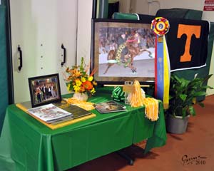 This was the second trip to Knoxville for owners Neal Holland and Bob Kilgore who previously exhibited World Grand Champion Main Power, but it was the first for avid Vol fan and joint owner of The Coach Joe Barnes. World Grand Champion rider Billy Gray was unable to attend due to illness so trainer Brad Davis exhibited The Coach to the delight of the Tennessee faithful.