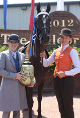 Back in the Trail Pleasure division, class 6 featured the Owner-Amateur Riders on English Trail Pleasure Walking Horses with 16 of the 19 on the books working to the track to show their best moves for Judge Connie Waldo and her cohorts. Striding down victory lane for the second consecutive year was GiGi’s Majestic. In 2011, Janet Howell was in the irons for son, Jordan Howell. This year, Jordan took his horse back and made that victory ride himself taking the honors home to Murfreesboro, Tenn. Jordan and GiGi’s Majestic had already had a very good 2012 show season, picking up wins at the Gulf Coast Charity Celebration, the International Grand Championships and the Marshall County Horse Show. Jose’s Firecracker and Wayne Westbrook were second in the very talented class riding for Bob and Wayne Westbrook of Shelbyville, Tenn. Confederate Jazz and Kasey Kesselring collected the yellow streamers for the Kesselring family of Montverde, Fla.