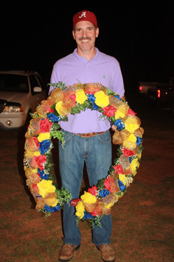 Scott Cooper proudly displayed the spoils of victory earned by I'm Judge Roy Bean and Gary Edwards (not pictured) at the Billie Lane King Cotton Horse Show.