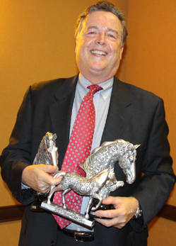 Robert Deutsch proudly poses with his awards won with Walk With Me and Be My Baby at the ETWHA Awards Banquet.