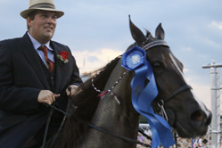 Owner-Amateur Riders on Three-Year-Old Walking Stallions, class 126B, featured six of the 13 on the program working down the hill to show for Allen Forman, his panel and the Tuesday night crowd. Riding to the top of the division with a unanimous decision of the judging panel was the reigning Two-Year-Old Amateur World Grand Champion I’m Mayhem and Sue Ann Dowell riding for Jo Ann Dowell of Powell, Ohio. Their 2013 resume includes wins at the Columbia Spring Jubilee, the Tony Rice Horse Show and the Marshall County Horse Show. Brain Power and Debbie Eichler were reserve in the class for Rising Star Ranch of Shelbyville, Tenn. He’s A Heavy Hitter and Charles Stivers were third for Glendon Stivers of Manchester, Ky.