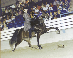 Blackjack Cash debuted to the show ring at the 1993 National Trainers’ Show with owner Rose A. Day in the Amateur Three-Year-Old Mares & Geldings class. Later that season she went on to be named the 1993 Three-Year-Old Mare Reserve World Champion and returned to win the 1994 Four-Year-Old Mares Reserve World Championship.