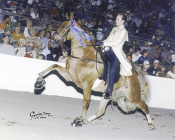 Anyone who had the opportunity to come in contact with the beloved sorrel pony knew he was something special. From carrying young 11 & under exhibitors to the 50 & over class “Bones” captured the hearts of the young, old and all of those in between. Showing an impressive 109 times in his career he captured 24 blues and 19 reserve honors. In 1999 “Bones” and young Callie Stuckey claimed top honors in the Youth 17 & Under Novice class that gained them a world championship title.