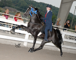 Doc Ty started his career with Jimmy McConnell and was shown by both McConnell and Dan Waddell winning blues, as well as a third place tie at the 2003 Celebration. In 2006 he entered the amateur ranks and was shown by Jeff Sanderson. Clay Mills from North Carolina began a highly successful season with the talented and loving black stallion in 2007. At the 2007 Celebration, he was purchased for Lauren Williams to show. She enjoyed many blue ribbon rides in Middle Tennessee. His final show was at the Illinois WHA Fall Charity in Springfield, Illinois with Lauren winning the Amateur Specialty Stake. He was retired from the show ring in 2010 and remained at Scrivner Stables in Murfreesboro until he went to Ohio in 2013.