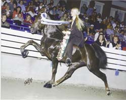 He won numerous blue ribbons under 8 different trainers. Bonnie Cady owned him for several years. "He was a joy to show because you could feel him elevate as he hit the gate," said Cady.