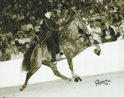 Owned and loved by the McCloy family for the past 22 years, Silver Dollar carried Allison to a world championship in 1995 by becoming World Champion Four-Year-Old Amateur Stallion. Another reserve world championship came in 1996 with Allison aboard and then in 1997 he become a world grand champion with Link Webb aboard in the 15.2 Stake. One of his greatest show ring appearances was in the 2000 Tennessee Walking Horse World Grand Championship Stake, after a grueling class he was named Reserve World Grand Champion Tennessee Walking Horse. The excitement of that class is still remembered today. Silver Dollar made 66 show ring appearances and left the ring with 30 championships and 23 reserve championships. He was a world grand champion, two-time reserve world grand champion, three-time world champion and four-time reserve world champion included in those 66 appearances.
