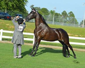 Sired by Stormy Night Of Pride RW and out of a Just A Bum mare, Silk was a six time Model Mare World Champion under the direction of four different handlers: Beverly Lamp Carter, Robert Nelms, Jeff Laughlin and Karen Mcgee Harnden. She won her last model class at the 2017 Walking For Angels Show with Joe Lester at the lead.