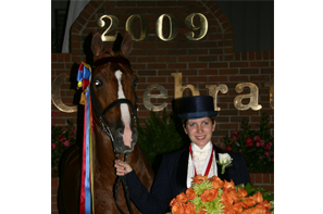 The Trail Pleasure entries were up next on the schedule for class 143, Owner-Amateur English Trail Pleasure World Grand Championship. Thirteen of the 14 on the books worked to the track to show for Judge Sam Sorrell and his staff. Repeating their 2008 win in the division, Playin’ Hooky and owner/exhibitor Liz Gassaway of Shelbyville, Tenn., picked up another set of roses with a unanimous decision of the panel and retired the Sabra Smith Memorial Challenge Trophy with the win. I’m Rose Walker and owner/exhibitor Lauren Hamilton of Murfreesboro and Cedar Grove, Tenn., pulled in to the second award. She’s Pretty Jazzy and Paige Bennett rounded out the top three Paige Bennett and Kaitlyn Rippy of Alvaton, Ky., and Greenbriar, Tenn.