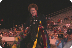Class 141 featured the Elite Owner-Amateur Riders on Walking Horses World Grand Championship. Eleven of the 14 on the books worked down and found their spot on the rail to work for their chance at World Grand Championship acclaim. After making an extraordinary performance to the win in the Stallion preliminary on Monday evening, Star and Wilsene Moody brought the crowd to their feet once again to capture the roses and make that sentimental journey down victory lane as the crowd rewarded her with a standing ovation. This team garnered this with a unanimous decision of the panel. Palm Beach Ritz and owner/exhibitor Sandra Johnson of Atlanta, Ga., and Shelbyville, Tenn., rode to the popular reserve. Command & Control and Sheryl Crawford were third for Crawford Colts of Carrollton, Ga.