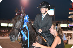 The young riders were back for class 54, Owner-Amateur Youth Riders 6-14 Years on Walking Ponies. Nine of the 27 expected worked down from Calsonic Arena to show their very best for the Friday night crowd and the judging panel, who was led in the event by Judge Mike Carpenter. Intimidating the competition with an outstanding performance was Silver Dollar Intimidator and Trey Blackburn riding for Amy Blackburn of Arab, Ala. This win tallied number four for 2009 with previous wins coming at Reeltown, Ala., the Alabama Ladies Auxiliary Horse Show and the Arab Parks and Recreation Horse Show. Headed back to the Buckeye State, Ritz Tornado and Meghan Davis accepted the red ribbon for Mike and Beth Davis of Cincinnati, Ohio. I’m Major Payne and WhitLei Green was third for Keisha Ashe of Asheville, N.C.