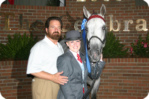 The professional trainers made their first appearance of the night in class 50, Two-Year-Old Walking Geldings. Thirteen of the 30 with reservations worked to the rail under the watchful eye of Judge Mike Carpenter and his cohorts. They had their sights set high, but proved to come through as 9 In The Sky and Wayne Jones, 2009 champions at the Tony Rice Horse Show, were called to the winner’s circle for Corri Knudson of Roanoke Rapids, N.C. Chad Williams and Bacardi And Me pulled into the second spot for Don and Lucky Collins of Bell Buckle, Tenn. American Heart Throb and Jimmy McConnell rounded out the top three for The Tommy Grider Family of Columbia, Ky.