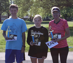 The winners of the Footloose for 5K were: Dylan Yost (male), Alana Hester (youth) and Nell Green (female)
