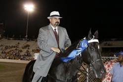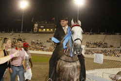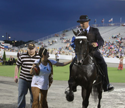 With a final victory pass by Turnbow and Russ Thompson, the Friday Night performance of the 75th Annual Tennessee Walking Horse National Celebration was complete and what a great night it was! Last evening, one barn, Baucom Stables of Monroe, N.C., had a great night winning five blues. Tonight, the winning was more spread out with nine different barns scoring a Celebration win tonight and no barn winning more than two (Carl Edwards & Sons Stables, Russ Thompson Stables, Allan Callaway Stables, Webb Stables, Joe Fleming Stables each had two wins, while Wright Stables, Charlie Green Stables, Phillip Trimble Stables and Pollack’s Silver Spur Ranch each had one win).