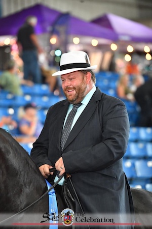 In a debut performance, Bodie and Darren Gray of Orlando, Florida, closed out the morning classes with a unanimous blue ribbon win in the Owner-Amateur Riders on Two-Year-Old Country Pleasure Walking Horses, Optional Tack class. Twelve of 13 scheduled entries made the gate with Leah Boyd calling the class. Second was Mind Your Business and Dr. Shana Hughes of Russell Springs, Kentucky. Vivian finished with a yellow ribbon with Amanda Manis aboard of Shelbyville, Tennessee.