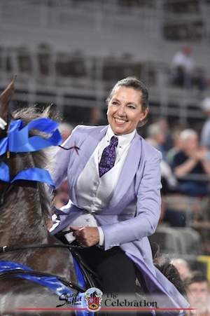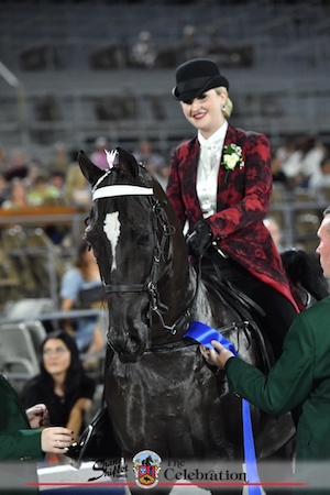 Call judge Leah Boyd welcomed 13 of the 17 planned entries in the Two-Year-Old Trail Pleasure class. Jalapeño added some heat on the way to the unanimous top honors with Joe Lester aboard for Kimberly and Perry Walden of Shelbyville, Tennessee. They are two-for-two this show season, with their previous win being the coveted International Maiden Grand Championship. Cha Cha Ching SF and Hannah Myatt rode to a second place ribbon for owner Janet Howell. Dead Beat Daddy was the third tie with Jessica Mast in the saddle for Dennis and Suzy Hills. Dead Beat Daddy was also the top Futurity nominated award winner.