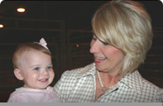 Jennifer Woodward holds granddaughter Jenny Reese Woodward following Barclay Woodward's Alabama Ladies Auxiliary win.