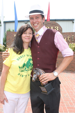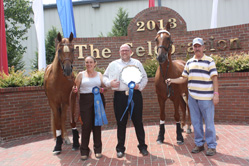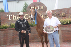 Promptly at 9 a.m., in keeping with Celebration tradition, the gates swung open and welcomed the seven entries in class one, Model Pleasure Walking Mares. Judge Leigh Stuart served as call judge for the opening event. Capturing that first World Championship of the Diamond Anniversary Celebration was Hot Silk and Robert Nelms at the lead for Carole Hargett of Shelbyville, Tenn. Hot Silk is a classic horse, meaning one 15 years or older and this makes this mare’s seventh win of the 2013 season. I’m A Coppertone Girl and Mike Hicks were reserve for Rushing Creek Walkers of Dickson, Tenn. Parole’ Precious Girl and Bill Bobo were third for Sam and Michelle Moss of Franklin, Tenn.