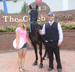 All 14 of the programmed entries for class 8, Owner-Amateur Riders on English Country Pleasure Walking Horses worked to the track to show their very best walking ways for judge Derek Bonner and his colleagues. The show has been moving right along this morning as only 3 classes remain at 10:40 a.m. Making that memorable victory pass in one of the larger classes of the morning was Designer Champagne and Maggie Moore riding for Maggie Moore and Jim Leek of Murfreesboro, Tenn. This made this team’s fifteenth win of the 2013 season and repeated their 2012 win in this division, very impressive indeed! Headed back Florida way with reserve honors was I’m Soulja Boy and owner/exhibitor Darren Gray of Clermont, Fla. I’m Manhatten and owner/exhibitor Tamara Hader were third taking the honors back to Bainbridge, Ga.
