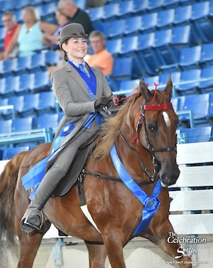 Next up to the ring were five entries of the seven with reservations in class 11, Two-Year-Old Lite-Shod. Making their first appearance at The Celebration at blue ribbon win was the team of Jose’s Charlie Boy and Brandon Ailshie for owner Jamie Armstrong of Knoxville, Tennessee. Jose’s Charlie Boy is by Walk Time Charlie and out of the Jose’ Jose’ mare, Hot Ticket. Chris Zahnd and Barcelona’s Lineman were awarded with the reserve finish for the Rogers and Woodruff partnership, while Ryan Gannon and Shore Line were presented with the yellow streamers for Wells and Heiden.