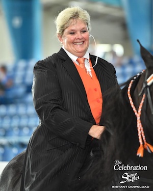 Elite Owner-Amateur Park Pleasure was next on the slate with six of the 12 with reservations vying for the world championship title in class 6. The number of entries may have been smaller, but the competition sure was not. Moving up from a reserve finish in this class for the past two years to wear the unanimous blue ribbon from the ring this year was Lisa Baum and Dose’. This is the fifth Celebration title for Dose’. Papacito and Karen Bean shined in their western attire to claim the second place honor. It was the well-known duo of Jannie Chapman and Dirty Sexy Money exiting with the third spot.