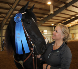 Oops Peek A Boo and Laurale Lowery shared a special moment following their blue ribbon ride at the PWHAT Jackpot Spring show in the Trail Pleasure Amateur class.