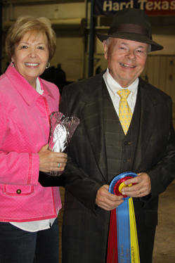 Henry Metcalf's number one supporter, wife Peggy, congratulates him on a job well done with Five Star's Jazzman in the Amateur Three-Year-Old Stallions class at the Kick Off Classic.