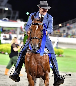 As the Celebration approaches mid-week, clear themes and standouts start to become more clear, and at the 2019 Celebration, there’s no doubt Tim Smith is on the short list of those pros who are right in their sweet spot. His team has been consistently at the top of the ribbon ranks all week long with several of those performances being right in line with what it means to be among the Celebration elite, including Smith’s ride in the climax of the Monday session, when he road I’m Pushin’ N Line hard to win the race in the 15.2 and under class for industry veterans, the Fostek family. Monday was also magnificent for crowd favorite He’s Made In The USA, who again starred in the top ranks of a great class, this time with Bill Callaway making an impression for reserve.