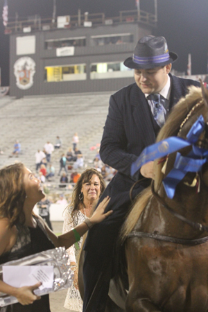 Three of the five in the final night of the class were world grand champions and all had their crowd support in the 15.2 and under stallions competition. Tyler Baucom was on the money Monday night and closed out the evening with the best position with Mr. Country Gentleman. Owner Robert Deutsch had won earlier in the week with this horse in the amateur elite division for the gentlemen.
