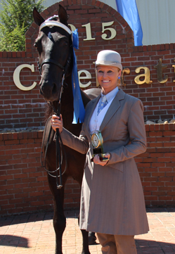 Moonshine At Midnight and Kyndra Myers were all smiles following her World Championship ride in the O/A Riders on Classic Park Pleasure class this morning.