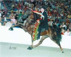 More recently, Johnson bred Walking Horses at Waterfall Farms in Shelbyville, Tennessee and won a number of World Grand Championships. The Johnsons owned the 1996 World Grand Champion, He's Puttin' On The Ritz. Johnson captured his last two World Championships in the same year, 2006. First, he directed A JFK's Monopoly to the Elite Owner Amateur Gentlemen Riders on Stallions. Then, he and Gen's Black Gin brought home the blue in the Owner Amateur Riders on Stallions 15.2 & Under. THe Johnsons also owned noted champions such as Mister Pushbutton, JFK All Over, John FK's Pusher, Generator's Man Of Magic, The Titleist and many more!