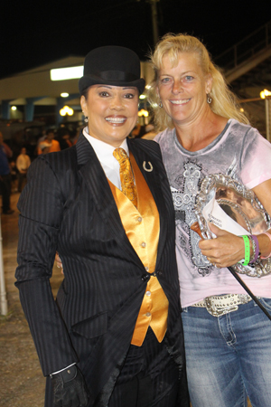 The amateur ladies fine harness class kicked off the evening’s festivities and with nine showing up the class had to be divided into two sections. Bobby Hugh received recognition for his skillful ways as the winning trainer of both sections, with Wilsene Moody-Kwok and Lined Royal Cash in the first group and Sandy Shumate and Bingo Time in the second. Danielle Ricker drove Masati and Robbie Spiller guided Dollar Dance to reserve, respectively.