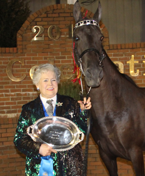 “I don’t know if I know of any other breed where as many classic horses show, or even a breed where they can make a class of their own with classic horses, but we sure can in Shelbyville, Tennessee,” said announcer Mark Farrar when naming the winner of this class. Kathy Zeis and Texas Joe Black carried away a big victory here wearing an even bigger smile.