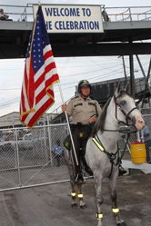 As always, promptly at 7 pm, the flag horse entered the gate to get the show underway. Unfortunately, Counterfeit Dollar was slightly injured prior to the show and was unable to carry the flag tonight. Fortunately, Ranger T Walker and Ernie Brubaker from the Bedford County Sherriff’s Department’s Mounted Patrol were able to step in and present the colors in fine fashion.