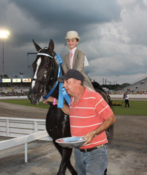The young riders were back for class 26, Owner-Amateur Youth Riders 15-17 on Walking Mares or Geldings. Thirteen of the 15 expected worked to the track as the rains started to fall lightly on the Thursday evening crowd. Judge Rollie Beard served as call judge for the class. Pushin’ their way to the winner’s circle one more time, after topping the same class at the 2012 Celebration, was the team of Pushin’ That Jazz and owner/exhibitor Robert Cortner taking honors back to Winchester, Tenn. This win marked their sixth for the 2013 season. Lord Stanley and Allison Thorson were reserve riding for ThorSport, Inc. of Sandusky, Ohio. Powerstroke’s Evening Star and Meghan Davis were third for Shamrock Farms/Mike and Beth Davis of Cincinnati, Ohio.