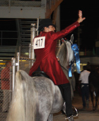 Class 30 brought the Owner-Amateur Riders on Four-Year-Old Walking Stallions down the hill with 19 of the 24 entered working down the hill as Leigh Stuart called the gaits for the class. Taking command of the large class was the team of Command On Parole and Sheryl Crawford riding for Crawford Colts of Carrollton, Ga. Memphis Mafia and Gail Walling accepted the reserve honors riding for McDonald and Walling of Wartrace, Tenn. Heza War Horse and Ed Breedlove rounded out the top of the class for Ed Breedlove and Bob Kilgore of Buford, Ga., and Tuscaloosa, Ala.