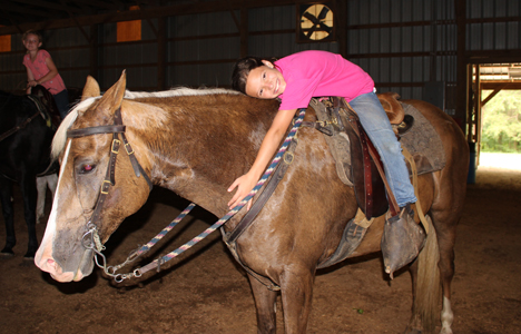 Next, some of the riders took it up a notch by engaging in a bareback riding lesson, which teaches them not to solely rely on equipment in communicating with their horse. It’s just one of many tools and activities used to improve campers’ skills.