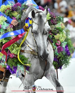 In the Owner-Amateur Lite-Shod World Grand Championship, it was the duo of Roscoe Jenkins and owner-rider Susan Coleman once again unanimously capturing the victory. This marked their 11th spotlight ride. They retired The W.H. “Butch” Cauthen, Jr. Memorial Challenge Trophy. They also have 12 world championships and are undefeated in Celebration classes. Two Guns and Blake Cammack were reserve for Champion Stables. The Master Of Ceremonies captured the third place tie with Terry Moran in the saddle for Darnell and Moran. Five of seven anticipated entries were in the ring.
