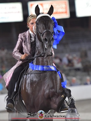 Ohh Troubador put on a show to win top honors in the Elite Owner-Amateur Ladies on Stallions class with owner-rider Allyson Armstrong from Hickory, North Carolina. They are a perfect three-for three in classes this year. Mach 1 sped to a second place ribbon with Molly Walters in the saddle for The Molly Walters Family. All About Jose’ was third with owner-rider Jackie Whaley. Ten of 21 programmed entries competed.