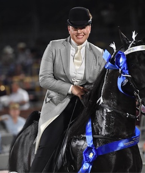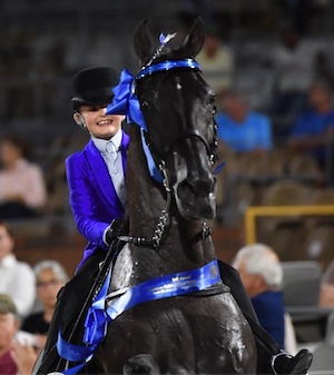 Boston Bay and co-owner Anne Evans of Johnson City, Tennessee, were called to victory lane in the Owner-Amateur Riders on Western Park Pleasure Walking Horses class. The red ribbon was given to Papacito and owner-rider Karen Bean, while A Titleist Masterpiece tied third with Blake Cammack riding for Champion Stables. Seven of the nine original entries were in the ring.