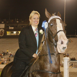 Class 116 featured the Owner-Amateur Riders on Park Performance Walking Stallions with 12 of the 13 expected making their way down the hill to show as Jamie Bradshaw led the panel in the class. Capturing top honors in the class for the seventh time and the fourth consecutive year was The Concealed Weapon and Patti Pollack up for S & P LLC of Saratoga, Calif. This duo has captured the blue in this class in 2005, 2006, 2007, 2010, 2011, 2012 and now, 2013. Ted Who and Kenny Compton were reserve for Rick Compton of North Tazewell, Va. Antonio Banderas and Jennifer Hall was third for Hall and Hall of Smyrna, Tenn.